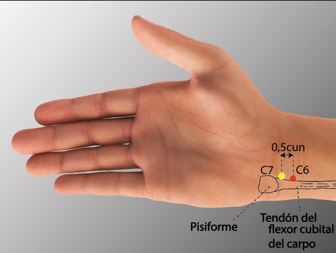 Punção: 0,3 a 0,4 cun inserção perpendicular.